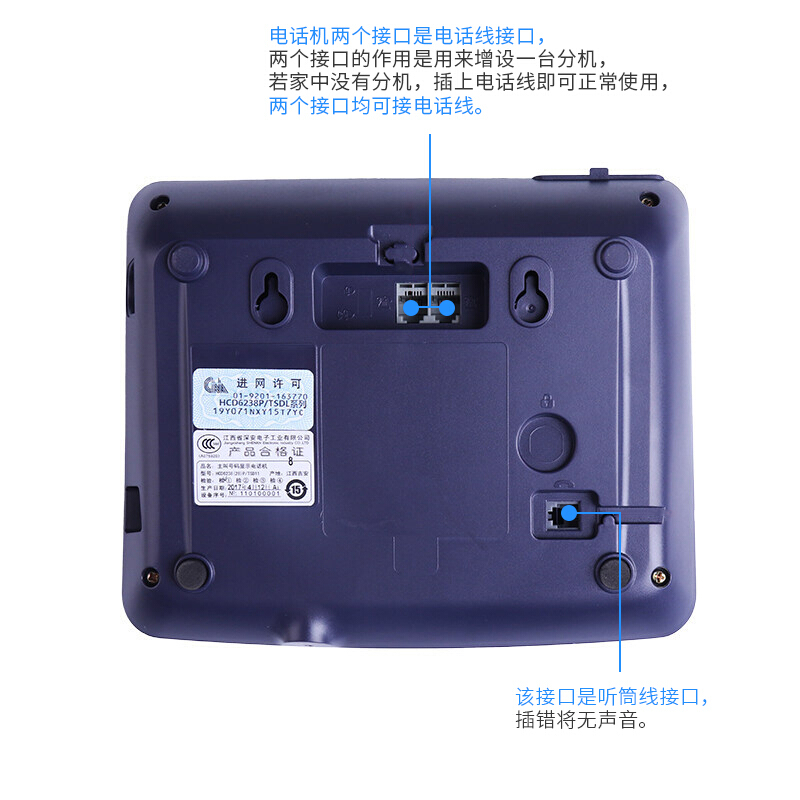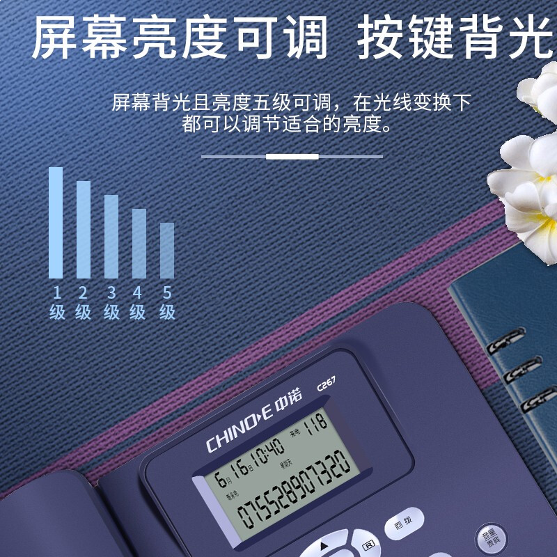 • 中诺(CHINO-E)C267座机电话机家用商用办公带免提通话来电显示免电池 蓝色