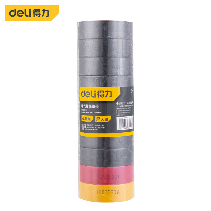 • 得力 DL5264绝缘胶带10米*10卷 三色(8黑1黄1红)