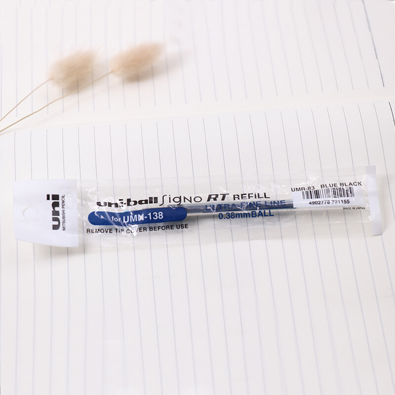 三菱(Uni)UMR-83中性笔芯(适用笔UMN-138/UMN-155)蓝黑色0.38mm12支装