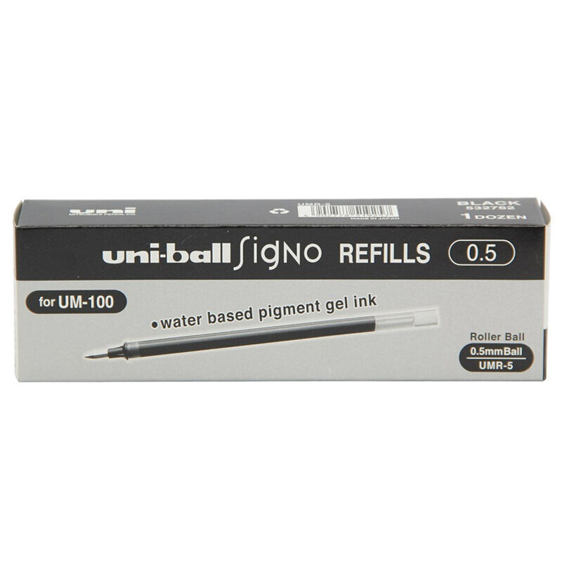 三菱UMR-5 中性笔芯(适用于UM-100笔)蓝黑色0.5mm10支装