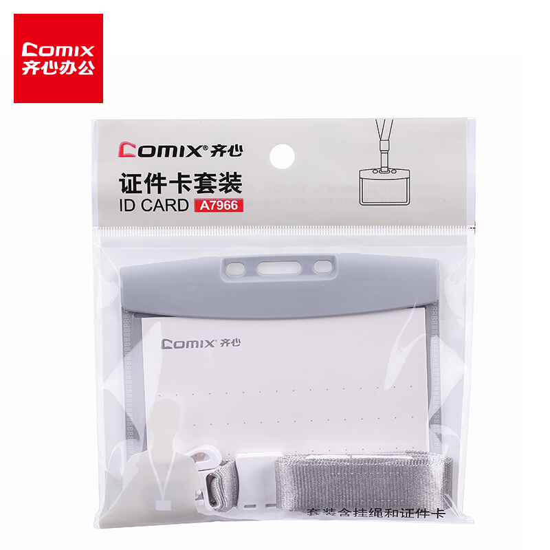 齐心(Comix) 横式工作证工牌挂绳套装证件卡套员工厂牌公交卡套 办公用品 灰 A7966