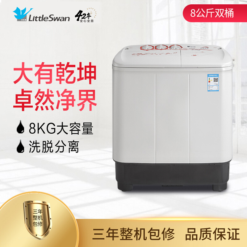 • 小天鹅TP80VDS08 双缸双桶洗衣机半自动 品质电机 强劲水流 三年包修 8公斤