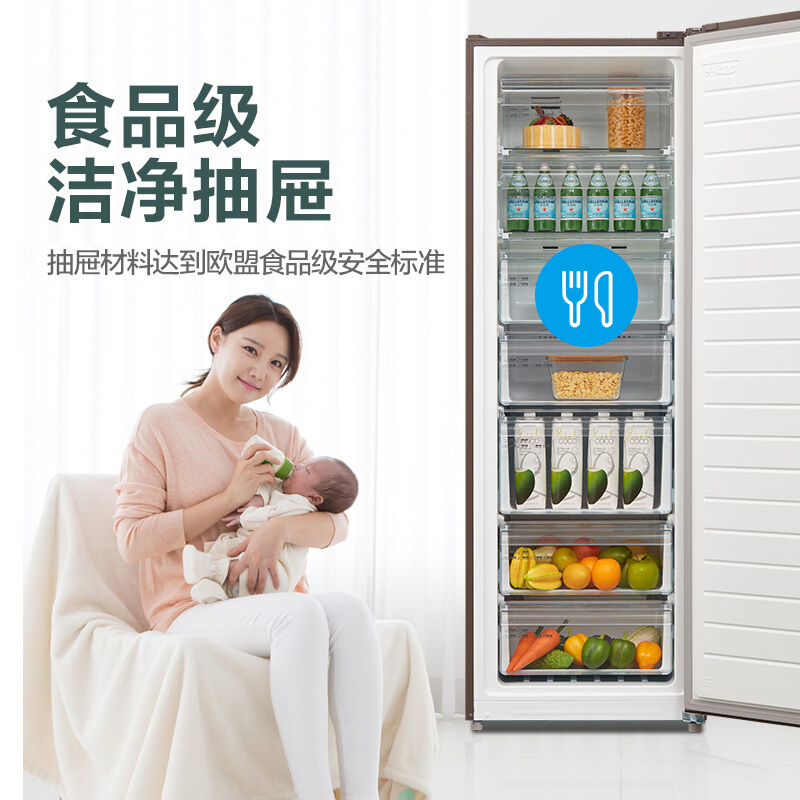 • 美的(Midea)240升单温风冷无霜客厅立式冷冻冰柜家用 分区抽屉节能保鲜母婴母乳冷柜BD/BC-240WE
