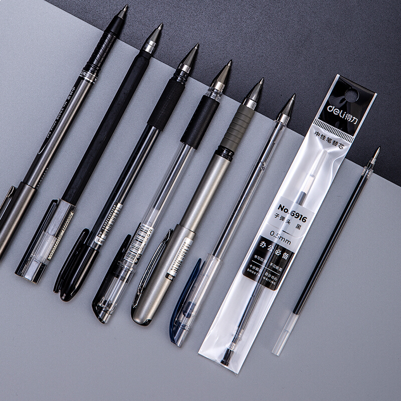 • 得力6916 黑色中性笔笔芯 0.5mm子弹头水笔签字笔替芯 20支/盒