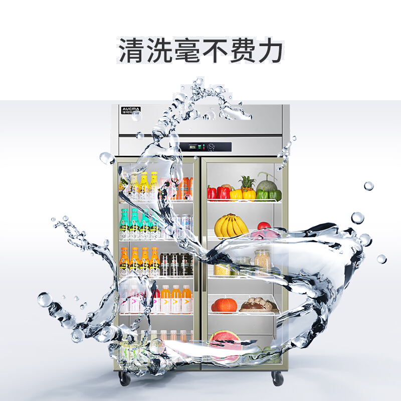 • 澳柯玛VC-879YT 商用立式双门展示柜 水果蔬菜保鲜冰柜 全冷藏玻璃门厨房冰箱