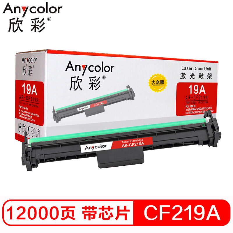 - 欣彩CF219A硒鼓 大众版 AR-CF219A鼓架 19A含芯片适用惠普HP M132snw M128fp M126nw M104a