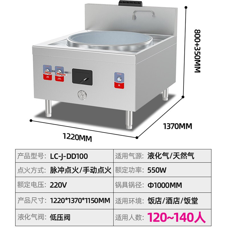 • 乐创(Lecon)商用燃气单头大锅灶 1000型锅径1000 天然气/液化气可选酒店饭堂炒灶 LC-J-DD100