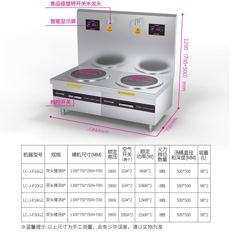 - 乐创(lecon)商用电磁双头矮汤灶 30KW大功率酒店饭堂企业炒灶 380V LC-J-P30G2