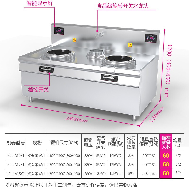 - 乐创(lecon)商用电磁双头单尾小炒灶 15KW*2大功率 380V LC-J-A15X1