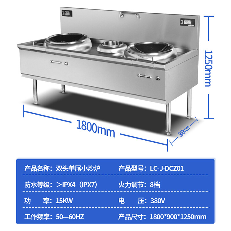 - 乐创 lecon 工程款电磁炉双头单尾小炒灶LC-J-DCZ01