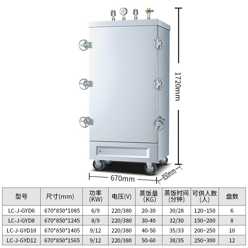 • 乐创(lecon)商用高原蒸饭柜 工程款食堂饭店高压电蒸饭箱 10盘蒸饭机 LC-J-GYD10