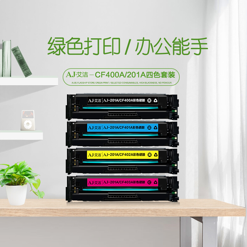 • 艾洁 CF400A 201A 硒鼓黑彩四色套装商务版(黑红黄蓝各1支)适用惠普 HP M252N M252DW M277N M277DW