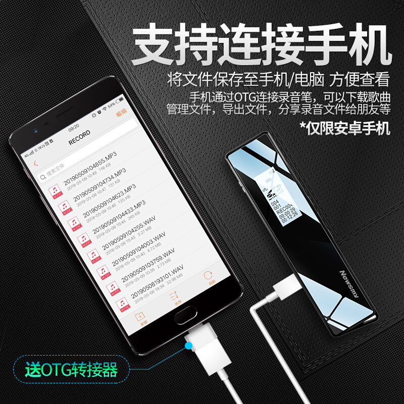 纽曼V03 录音笔专业高清降噪转文字超长待机会议商务上课用mp3迷你小型大容量录音器播 哑黑 8G