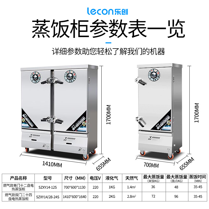 • 乐创 (lecon)蒸饭柜商用 酒店餐饮设备燃气蒸箱蒸包馒头炉食堂 全自动12盘定时SZXY14-12S