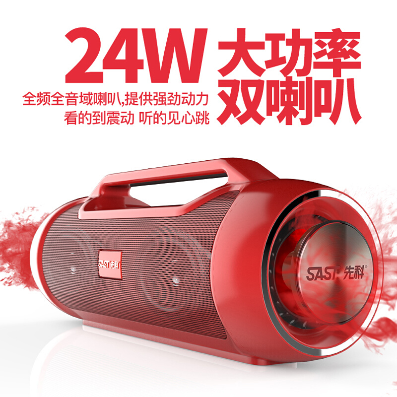 • 先科 V8 蓝牙音箱 24W大功率大音量无线便携播放器电脑户外广场舞低音炮高音质音响 红色+送制定便携背包+音频线