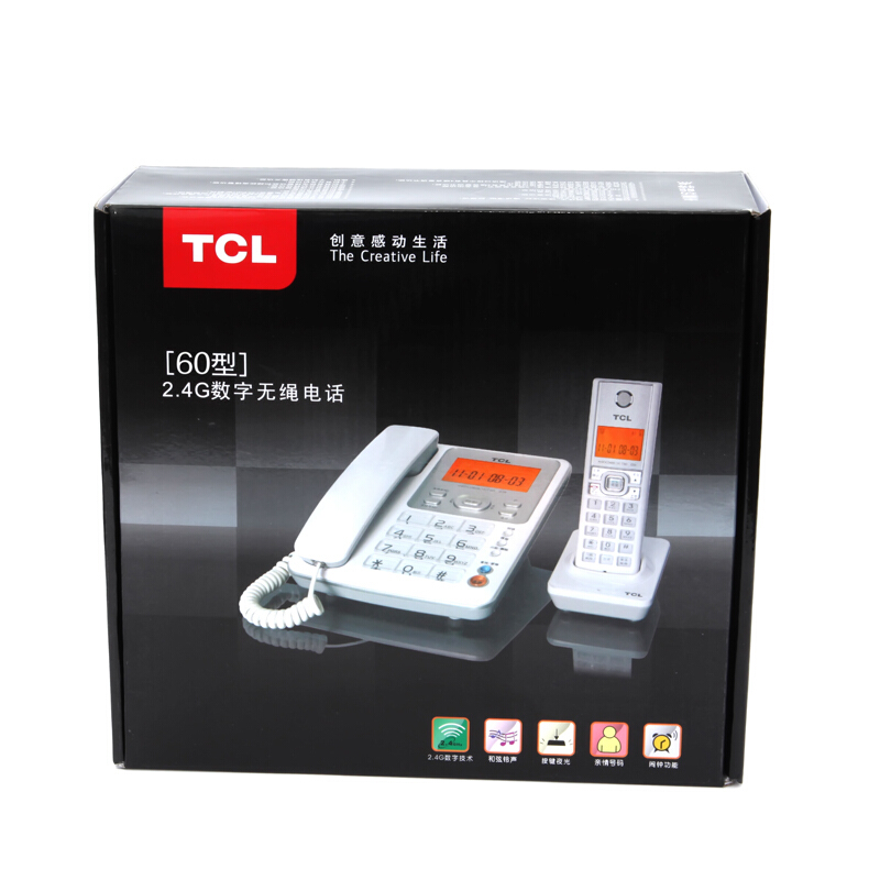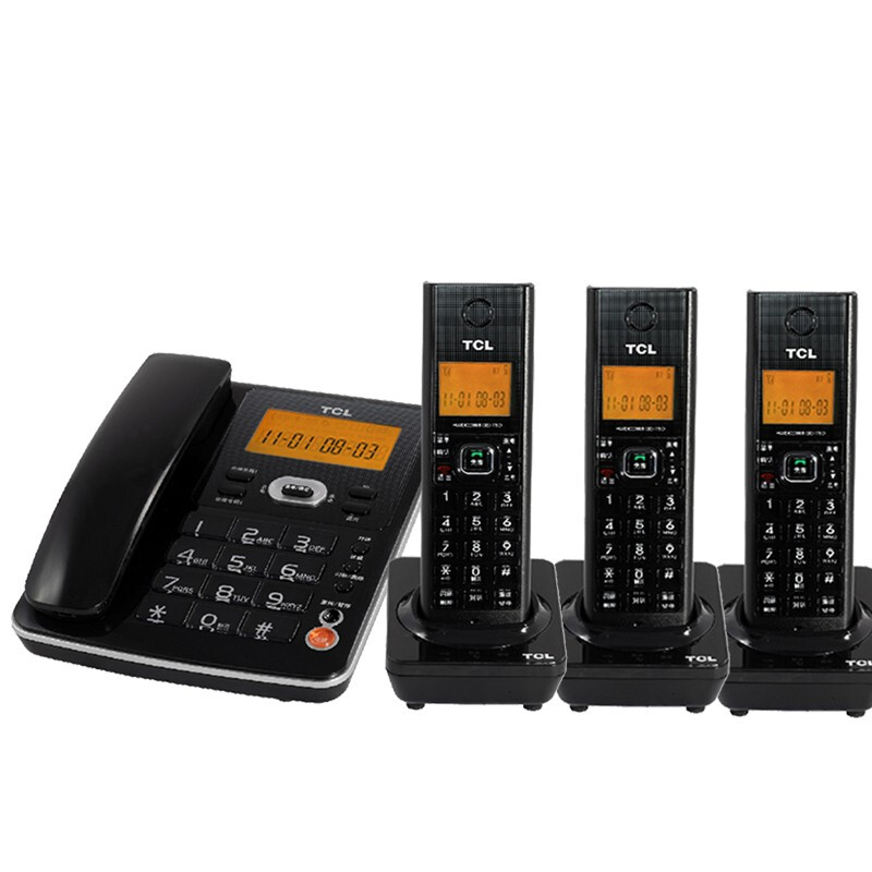 • TCL子母机电话 D61 家用固定座机 数字无绳电话机中文 来电显示清晰免提 办公无线固话 黑色一拖三