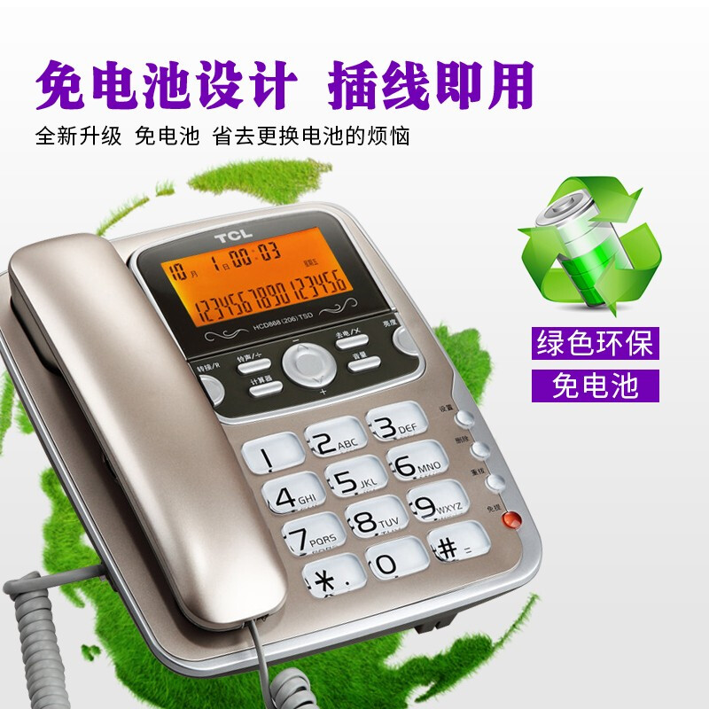 • TCL 电话机座机 固定电话 办公家用 双接口 屏幕可抬 大按键 HCD868(206)TSD (香槟金)
