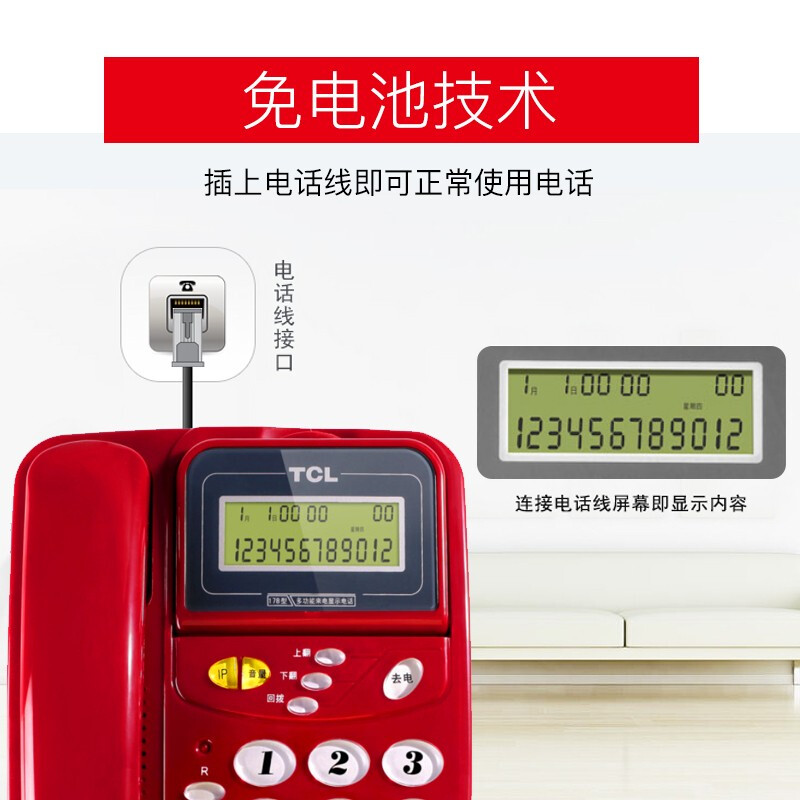 • TCL电话机 HCD37 家用固定座机 免电池有绳电话 免提时尚小翻盖办公固话 17B红色