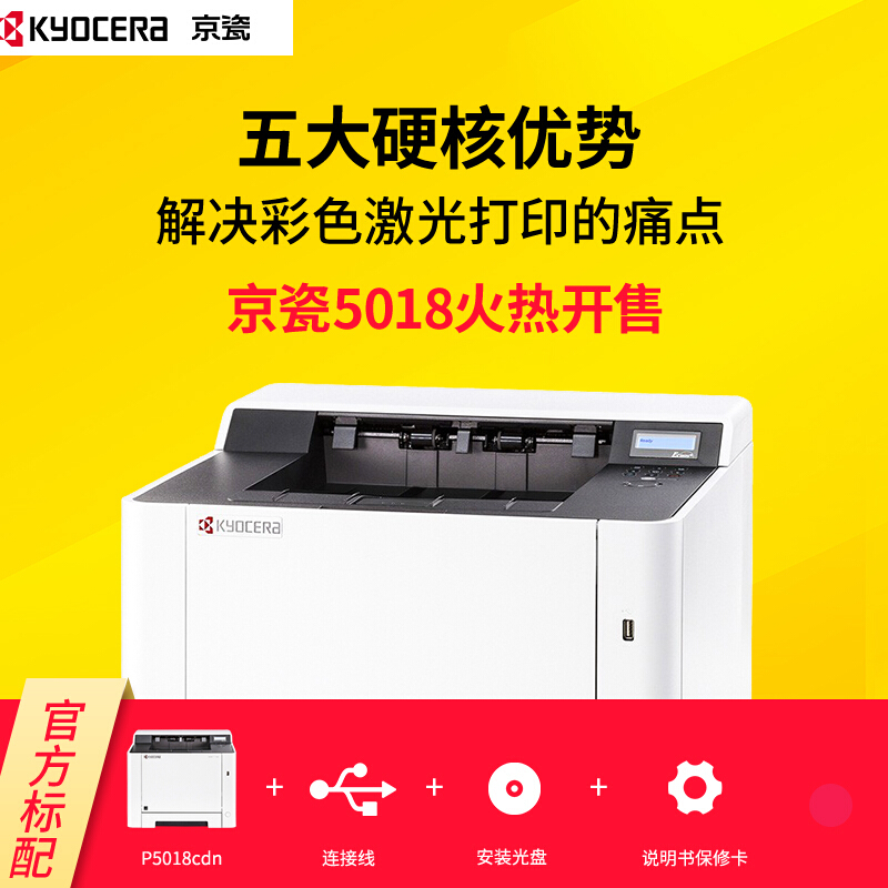 • 京瓷 P5018cdn A4激光彩色打印机 有线网络/手机打印/家用办公