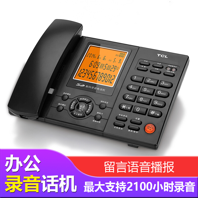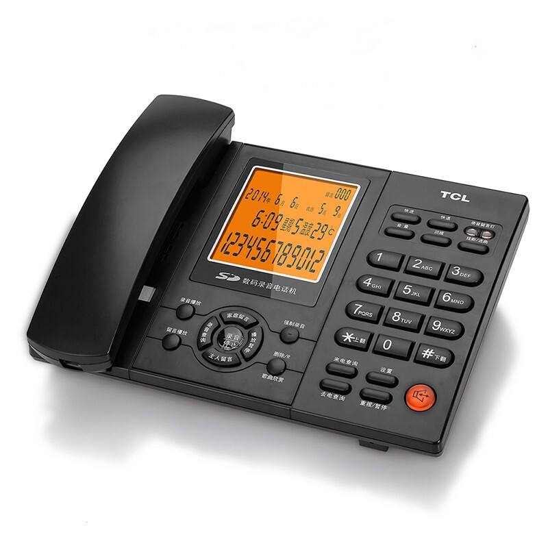• TCL电话机座机HCD88 录音固话电话 办公商务 SD卡存储 支持耳机 录音应答 黑色