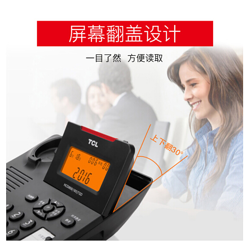 TCL电话机座机固定电话机 挂墙 计算器 来电报号 大音量来电显示电话座机 HCD(180) 黑色