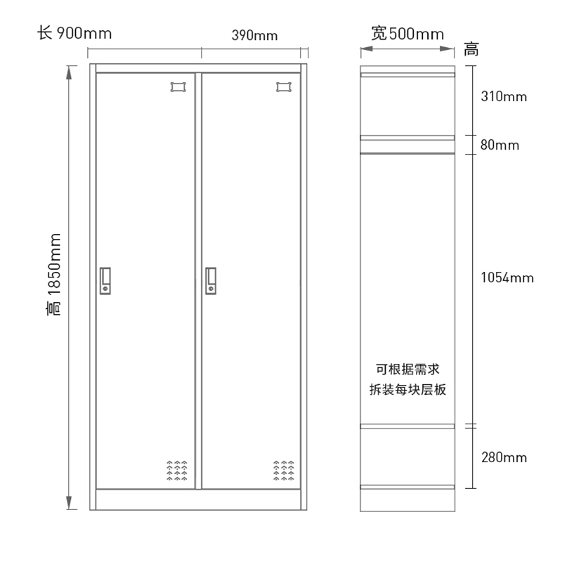 钢制更衣柜储物柜铁皮寄存柜存包柜 办公室带锁衣柜二门柜