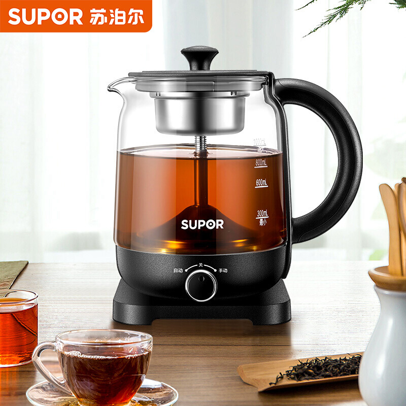 • 苏泊尔(SUPOR) SW-10C01 养生壶煮茶器煮茶壶电水壶热水壶烧水壶电热水壶迷你玻璃花茶壶黑茶