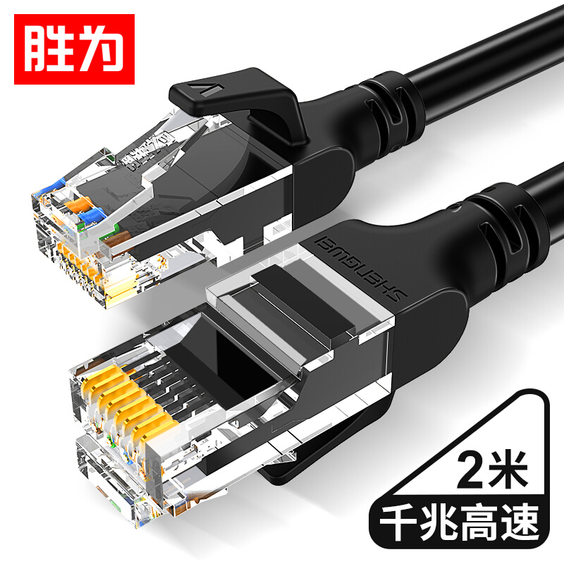• 胜为(shengwei)六类cat6类网线 千兆网络非屏蔽8芯双绞线 2米 工程家用电脑宽带监控成品跳线 LC-1202G