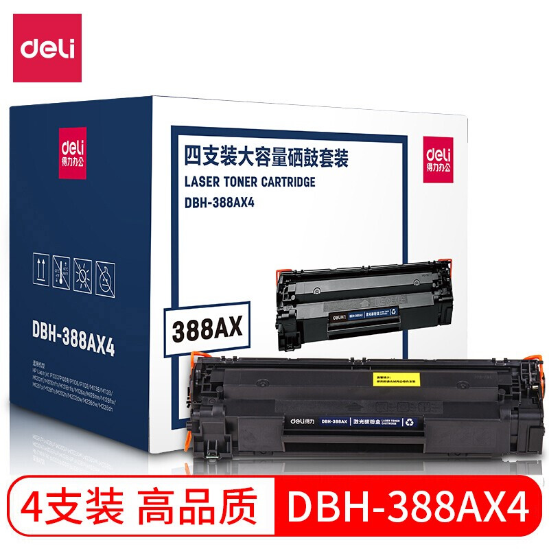 - 得力(deli)DBH-388AX4黑色硒鼓4支装 88A大容量打印机硒鼓 (适用惠普P1007 P1106 M1136 M1213nf M1216nfh)