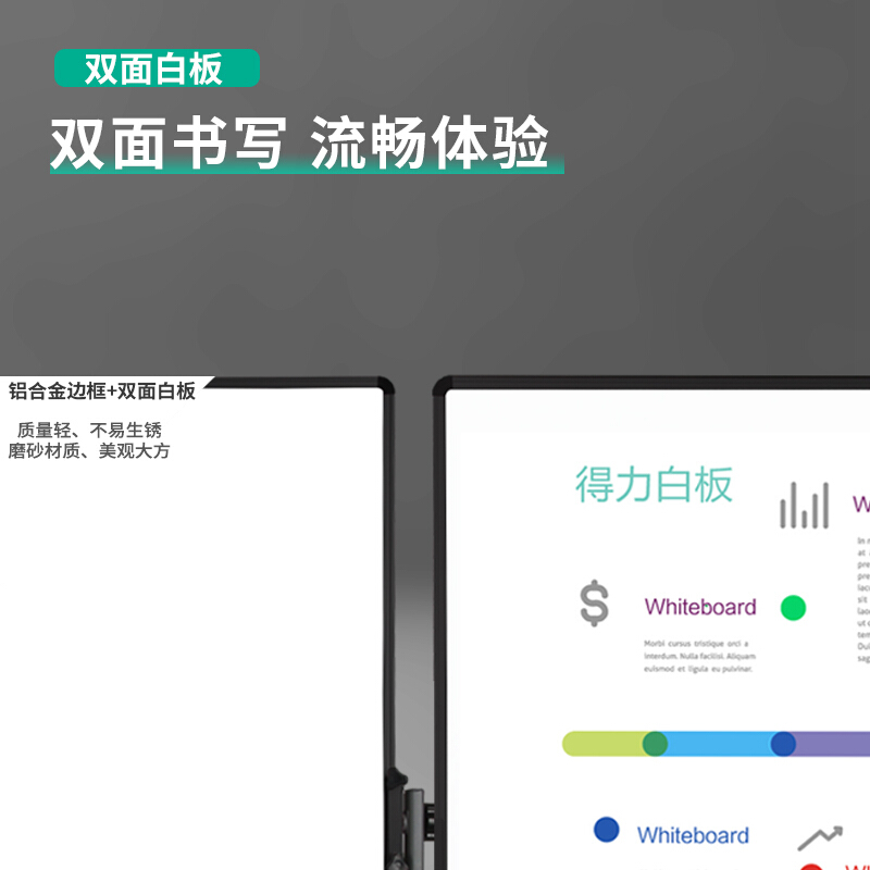 • 得力(deli)90*60cmH型支架式可移动可翻转白板双面磁性办公会议写字板黑板7881