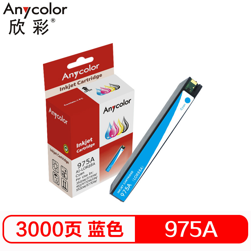 欣彩 975A墨盒 975C青色 专业版 AI-LOR88A 适用惠普HP 352dw 377dw 452 477dw/dn 552dw 577dw/z P55250dw