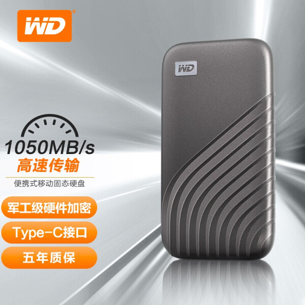 - 西部数据(WD) 1TB NVMe 移动固态硬盘(PSSD)My Passport随行SSD版 深空灰 防摔 加密 自动备份 Type-C