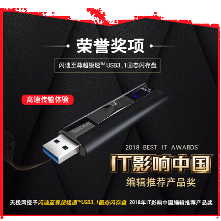 - 闪迪 CZ880 128GB USB3.1至尊超极速固态U盘 读速高达420MB/s 写380MB/s 移动固态硬盘般的传输体验