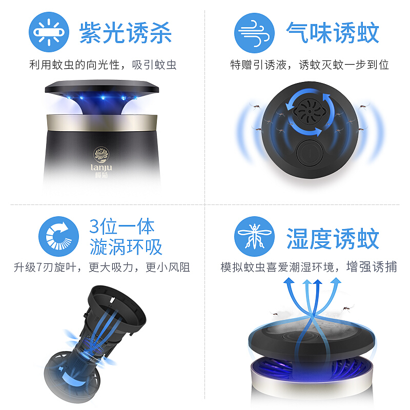 • 榄菊 灭蚊灯家用智能室内吸入式灭蚊器孕妇婴儿卧室驱蚊子诱蚊捕蚊吸蚊灯 三档风力
