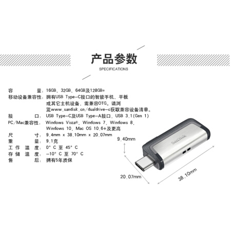 • 闪迪DDC2 128GB Type-C USB3.1 手机U盘 至尊高速版