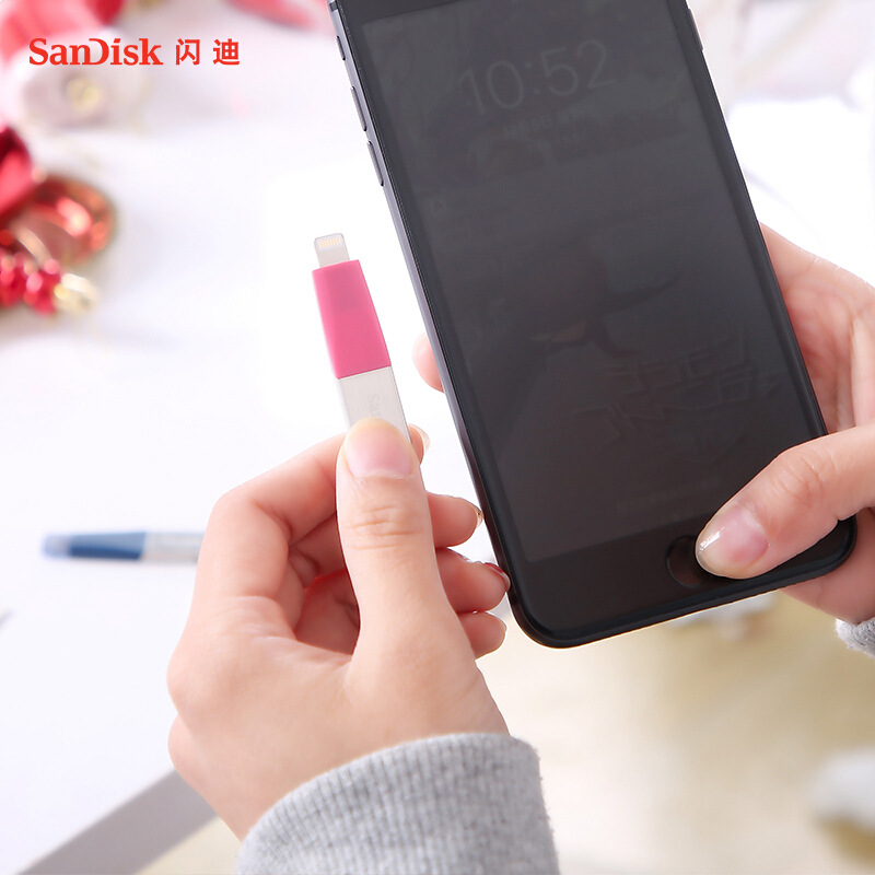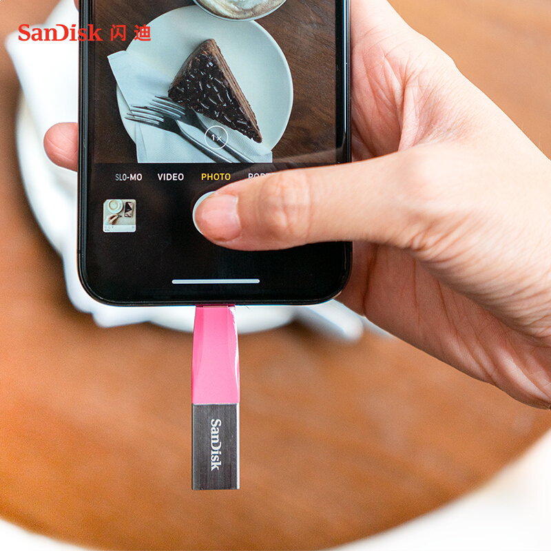 闪迪(SanDisk) Lightning USB3.0 读速90MB/s 苹果MFI认证苹果U盘 128G iXpand欣享粉色手机电脑两用IX40