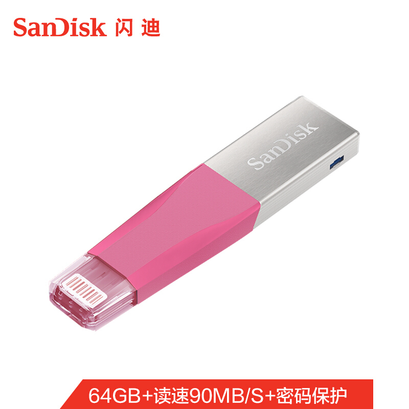 • 闪迪(SanDisk) Lightning USB3.0 读速90MB/s 苹果MFI认证苹果U盘 64GB iXpand欣享粉色手机电脑两用IX40