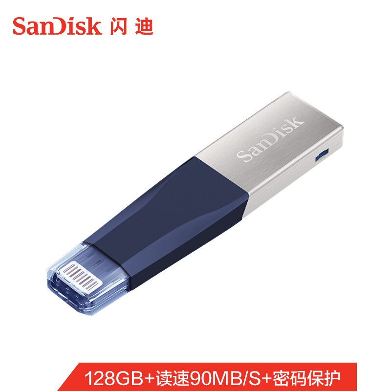 闪迪(SanDisk) Lightning USB3.0 读速90MB/s 苹果MFI认证苹果U盘 128G iXpand欣享蓝色手机电脑两用IX40