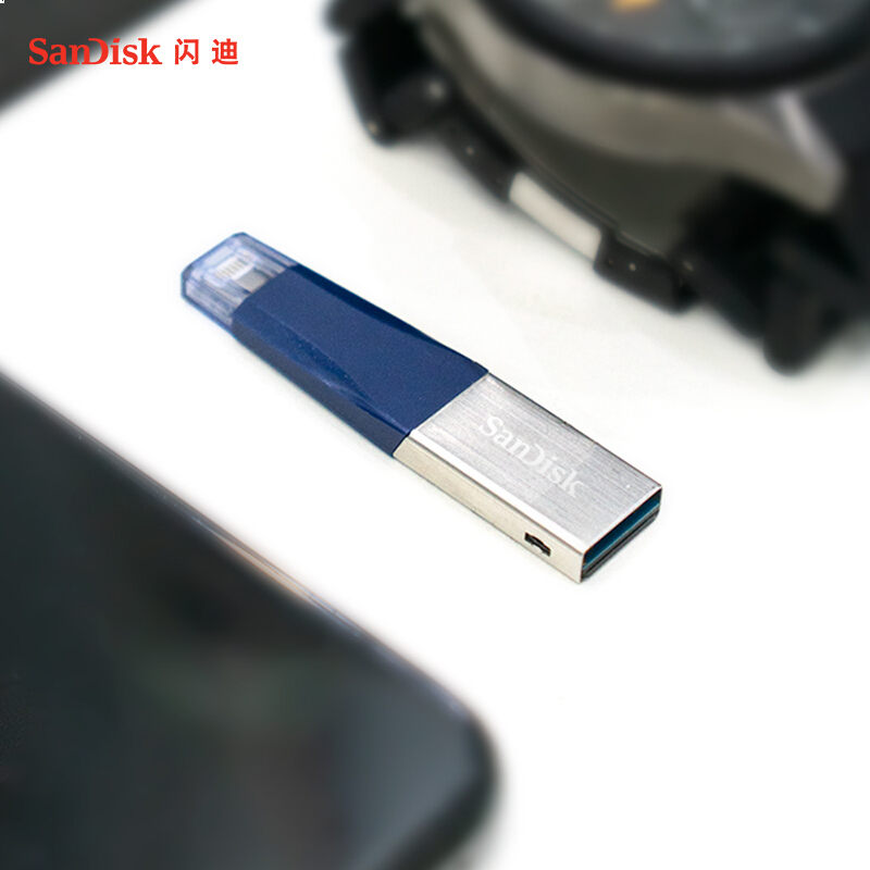 • 闪迪(SanDisk) Lightning USB3.0 读速90MB/s 苹果MFI认证苹果U盘 128G iXpand欣享蓝色手机电脑两用IX40