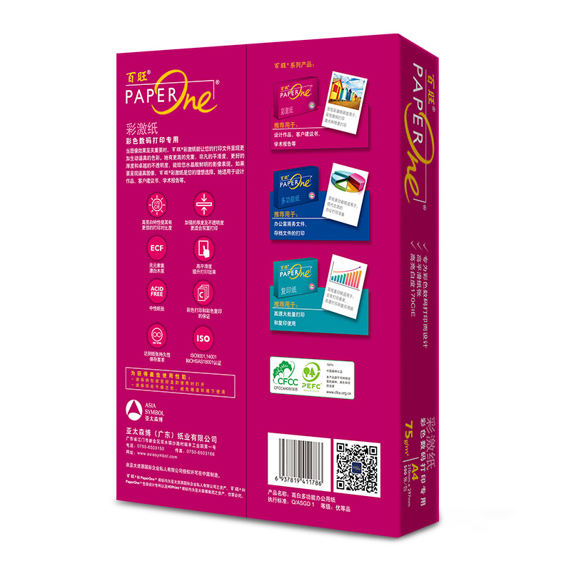 • 百旺(PAPER one) 75gA4 复印纸红百旺A4 高档彩激复印纸 75gA4 (计量单位1/包) 500张/包