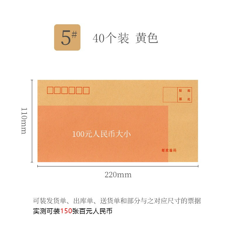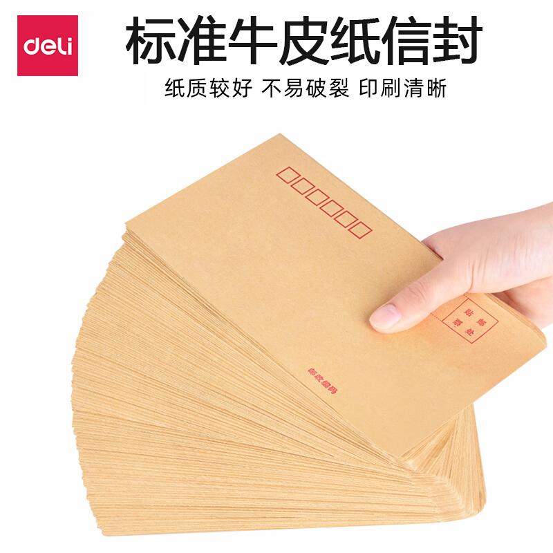 • 得力 5号米黄色信封牛皮纸信封 标准邮局信封中号简约加厚100g/m2信笺纸大号信封办公室用