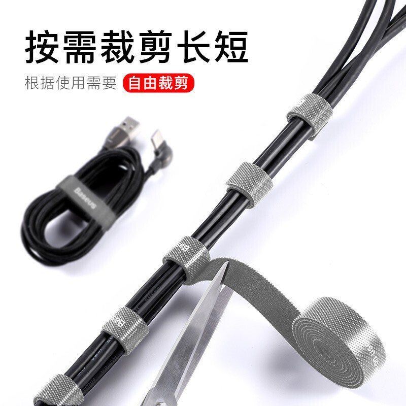 • 倍思(Baseus)魔术贴绑带电脑理线带 收纳线材理线器强力吸附双面勾毛 电源线扎线带捆线带自由裁剪 3米灰