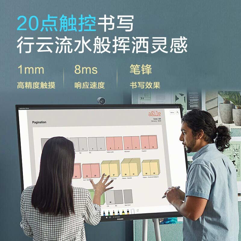 飞利浦(PHILIPS)4K智能会议平板 旗舰版65英寸电子白板教学一体机视频会议触摸显示器65BDL3352T+OPS(i3)