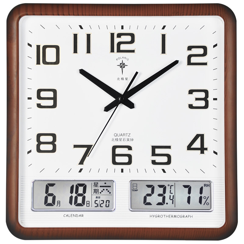 • 北极星(POLARIS)挂钟客厅石英钟万年历钟表简约挂表创意日历14英寸办公室时钟6825木纹普通款