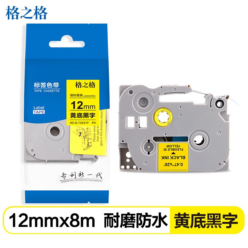 • 格之格 标签色带 适用兄弟标签机色带 12mm TZe-231 白底黑字 标签打印机色带