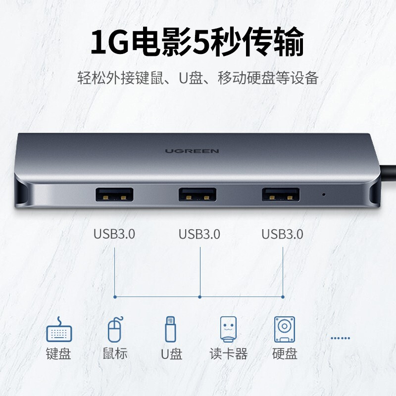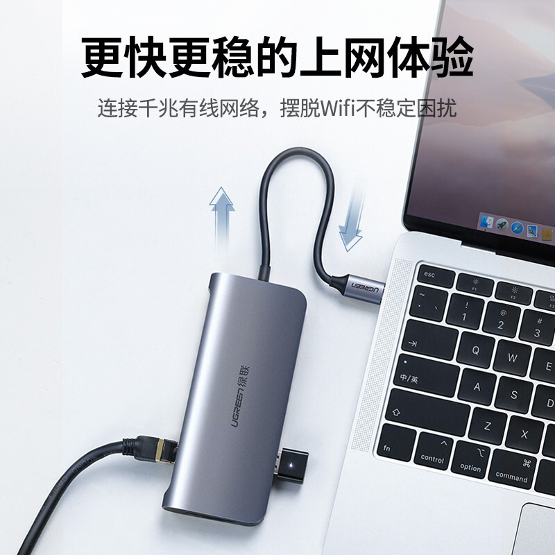 - 绿联40873(Type-C扩展坞通用苹果MacBookPro华为笔记本电脑 USB-C转HDMI线转换器4K投屏VGA拓展坞转接头网口分线器)