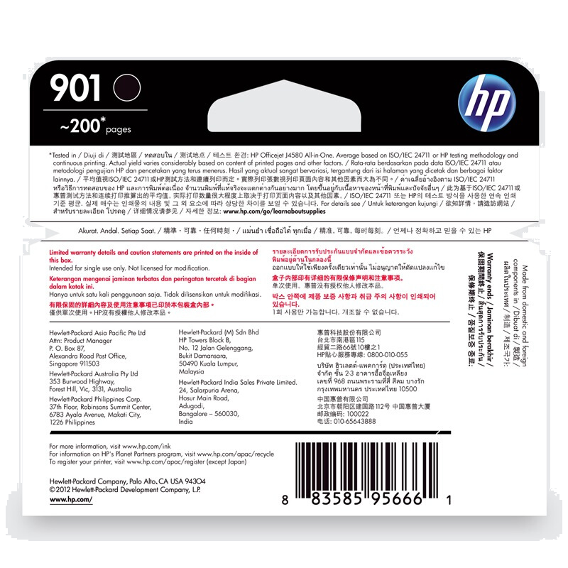 • 惠普CC653AA 901号黑色墨盒(适用Officejet J4580 J4660 4500)