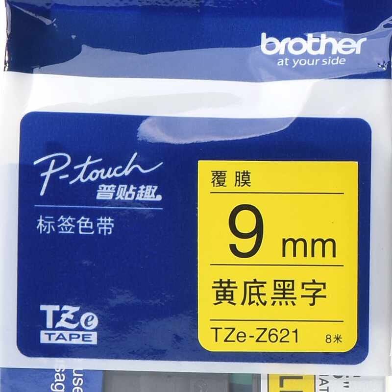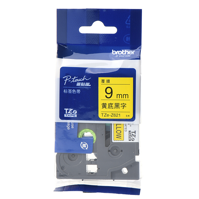 • 兄弟TZe-621 9mm黄底黑字标签色带 适用PT-E100B、E300、d210、D200、18rz、P700、9700、7600
