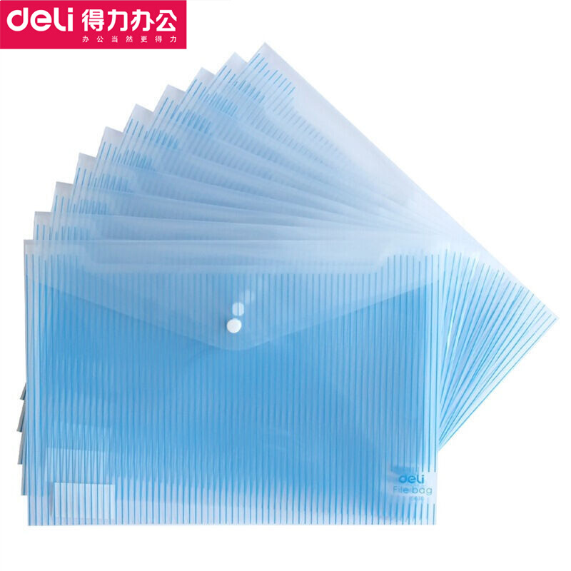 • 得力5630 按扣文件袋A4条纹半透明公文袋学生资料袋试卷 10只装