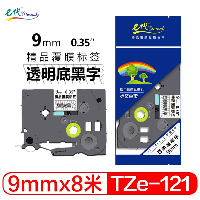 - e代 9mm透明底黑字 TZe121标签纸色带 适用兄弟标签机色带 PT-D210 200 600 900 PT-18Rz E550W
